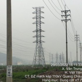 Thi công xây lắp đường dây 110kV, dự án: đường dây 110kV cấp điện trạm biến áp 110kV Seoul Semiconductor Vina, tỉnh Hà Nam